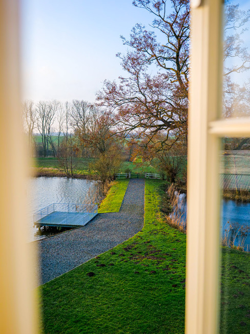 Wenn ihr auf dem Gut übernachtet, solltet ihr mein absolutes Highlight nicht verpassen: die Sauna und der Hot Tub direkt am Teich. Hier blickt ihr beim Entspannen direkt aufs Wasser – für mich der perfekte Tagesausklang.