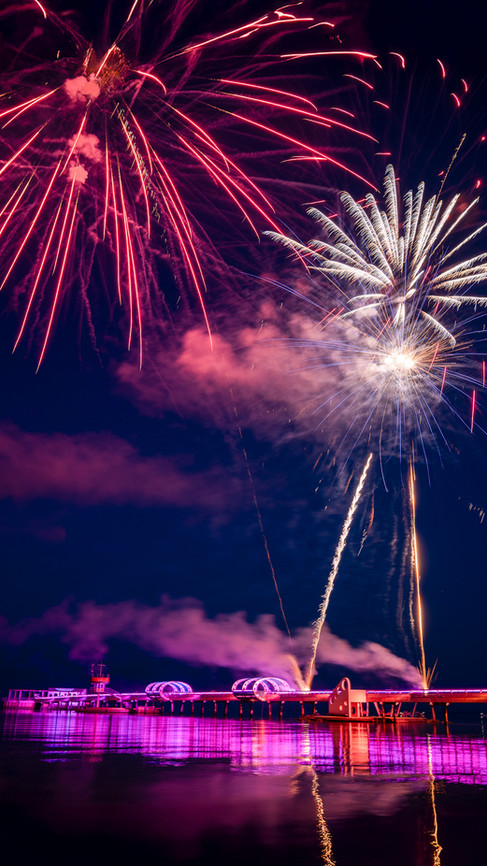 Dann wurde es magisch. Die Seebrücke Kellenhusen, ohnehin schon ein Hingucker, verwandelte sich in ein leuchtendes Kunstwerk. LEDs, Lichtshow, Musik und ein Feuerwerk, das so dramatisch war, dass es kurz leise wurde am Strand. Nur um Sekunden später in ein kollektives „Wooooow!“ überzugehen.