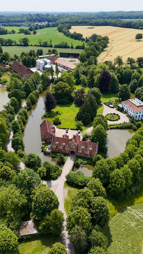 Schon beim ersten Schritt auf das historische Gut Petersdorf spürt ihr es: Hier liegt Erholung in der Luft. Umgeben von alten Buchenwäldern, weiten Wiesen und sanften Feldern öffnet sich eine kleine Welt, in der die Zeit langsamer vergeht. Das Anwesen besteht aus einem charmanten Gutshaus, einem einladenden Torhaus und einem alten Speicher – alles umrahmt von einem romantischen Burggraben, den zwei Brücken überspannen. So fühlt es sich an, als betrete man nicht nur einen Ort der Ruhe, sondern auch eine liebevoll bewahrte Zeitreise in vergangene Tage.